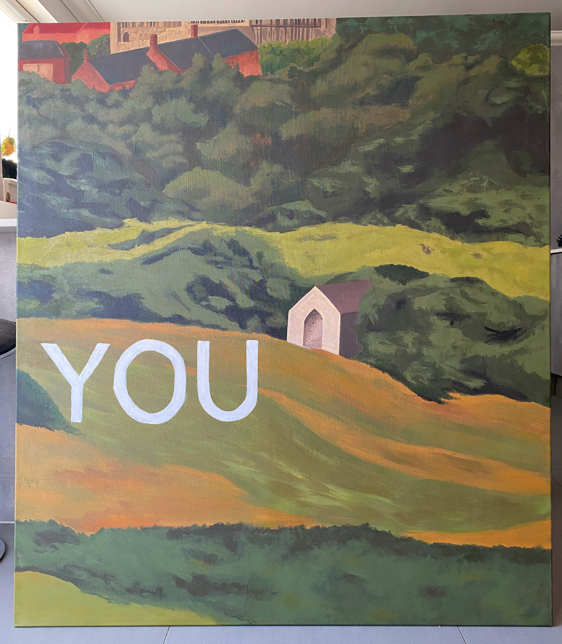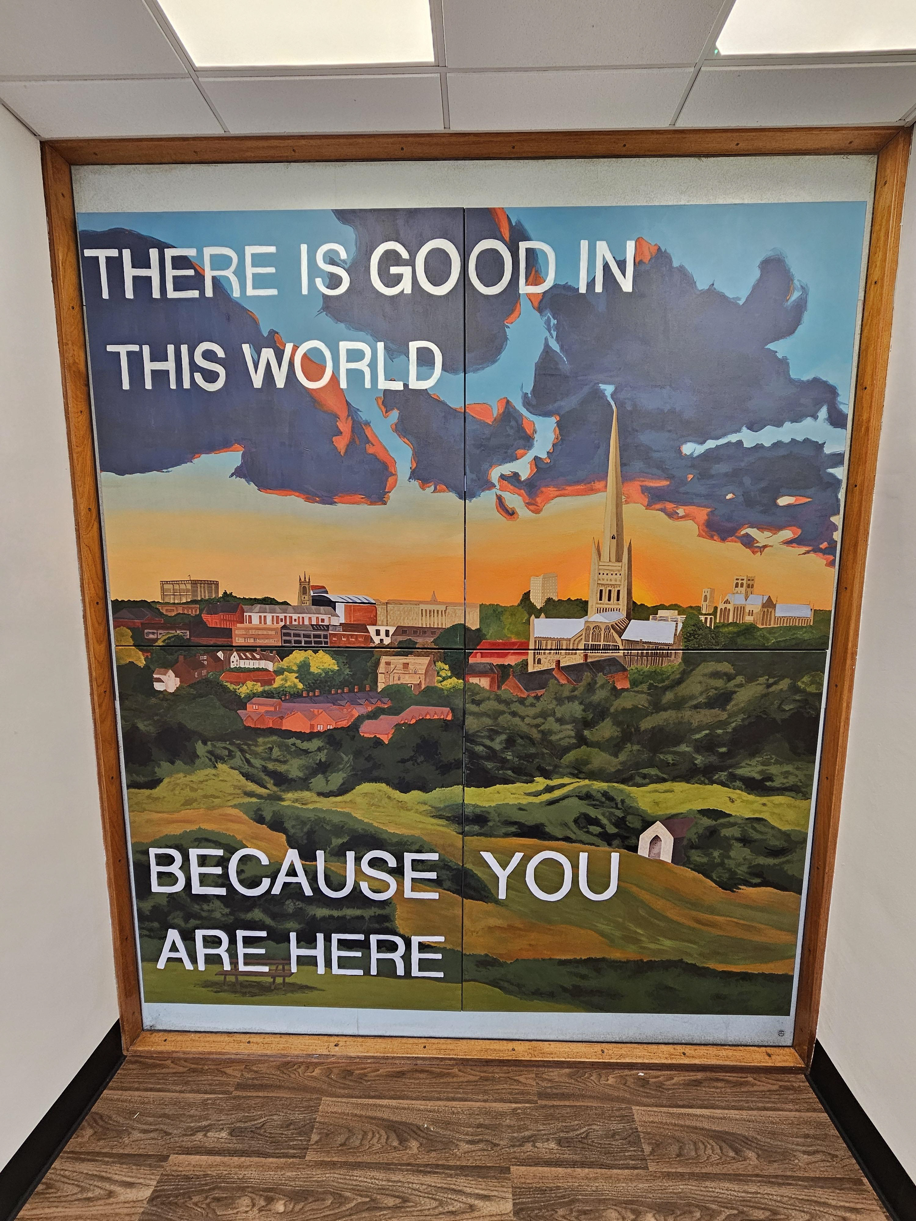 Large-scale commission for NHS mental health service in Norwich, with words chosen by them. Based on Mousehold Heath and Norwich skyline